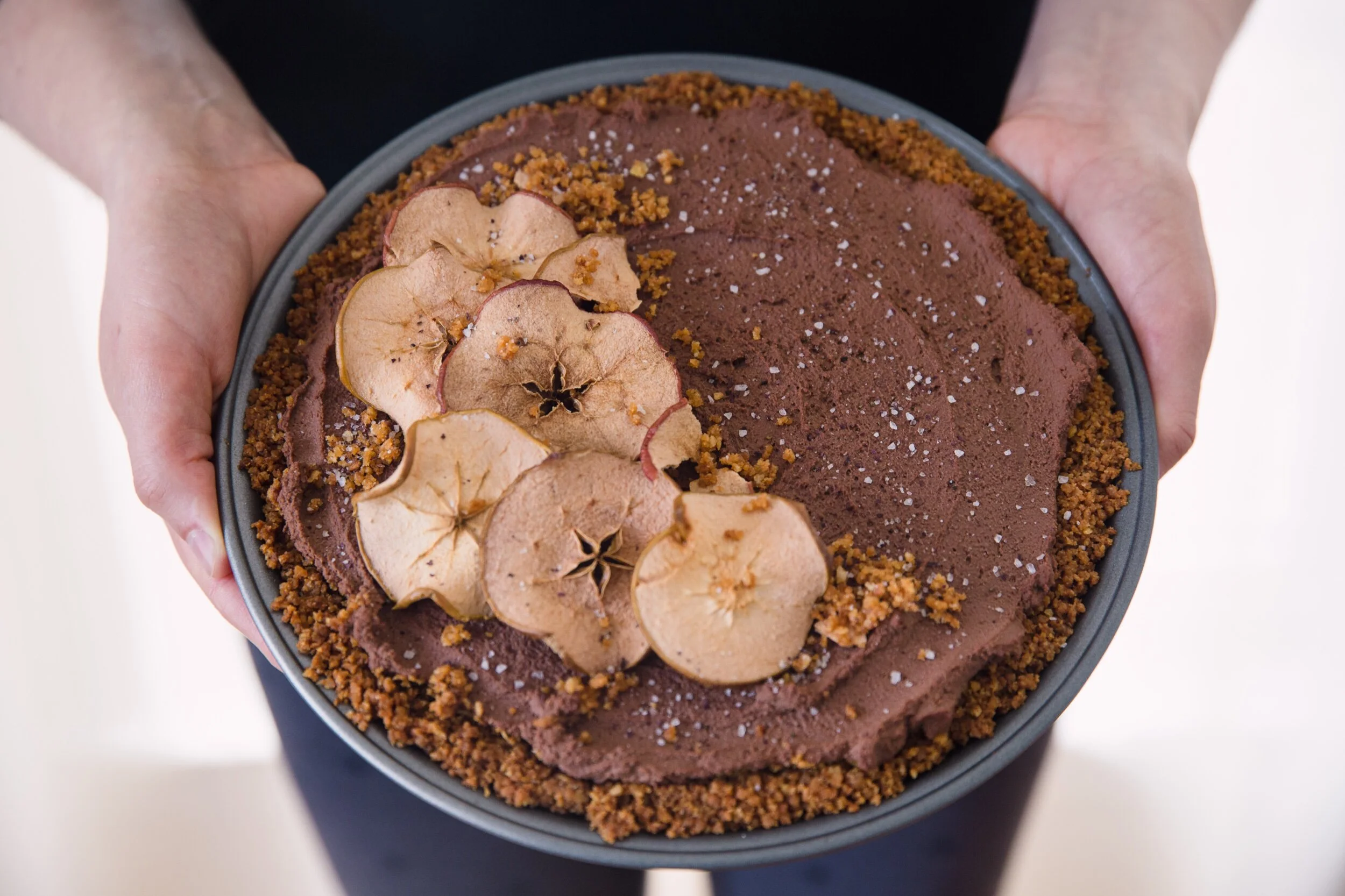 🍏To make pi(e): When the crust is cooled, pour the filling on top and refrigerate for 1-2 hours. Then top with apple chips, salt and potato chips.